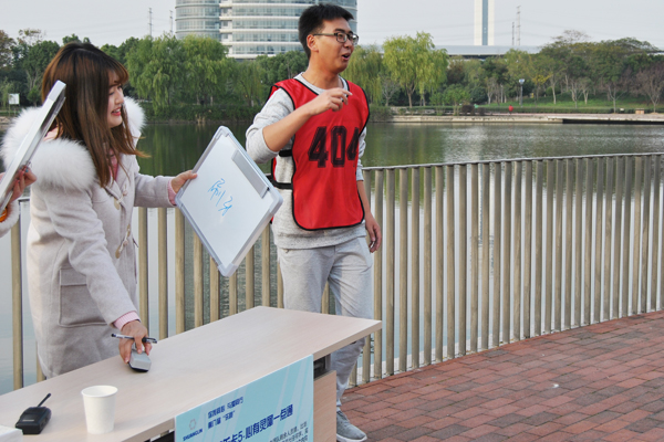 Each team had one member make body languages based on the word provided for him, without making any oral language, and other members guessed the word. After each word, the indicating member would be changed. If all the other members failed to guess the word, they could say “pass”. To complete the task, each team had to successfully guess five words in five minutes