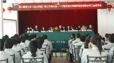 会议最后由集团公司工会王主席、宁海片区总经理陈总及县总工会周主席对本次职代会作了重要讲话,三位领导均对双林股份工会现有成绩的取得表示祝贺,对股份工会在过去的一年中为企业、员工所做的大量工作表示欣慰,同时也对双林工会在今后的发展也提出了方向。首先陈(有甫)总对2013年公司的发展、经营情况以及2014年发展的五大重要主线进行了简要的概述;其次集团公司工会王(红梅)主席针对工会的整体运作及未来的发展提出了建议性的3点意见:1)工会组织需持续整合/优化联动工作,全面推进工会组织建设;2)工会工作能够进一步承接企业战略和愿景,全面推进leyu乐鱼(中国)体育官方网站的发展;3)大力弘扬双林集团的核心价值观,继续发挥工会作用;最后县总工会周主席作了重要讲话,他不仅肯定了双林的工会工作,同时对双林今后的工作也提出了指导性建议,他提出,双林工会需充分发挥基层工会组织的作用,履行工会职能;积极搭建职工文化平台,正确把握企业的发展方向,不断的前进,共同营造团队精神氛围;同时也要配合企业发展,企业也需为工会的工作发展创造良好的条件;从而扩大双林工会知名度。