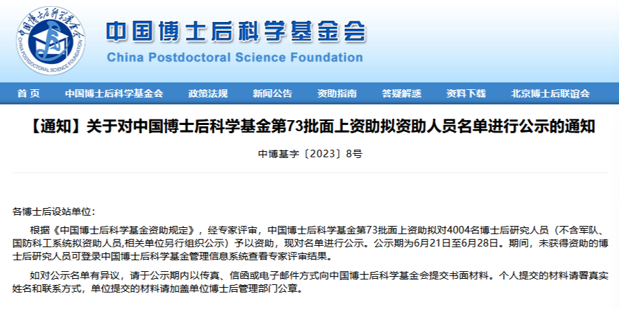 喜报!双林博士后荣获中国博士后科学基金面上资助
